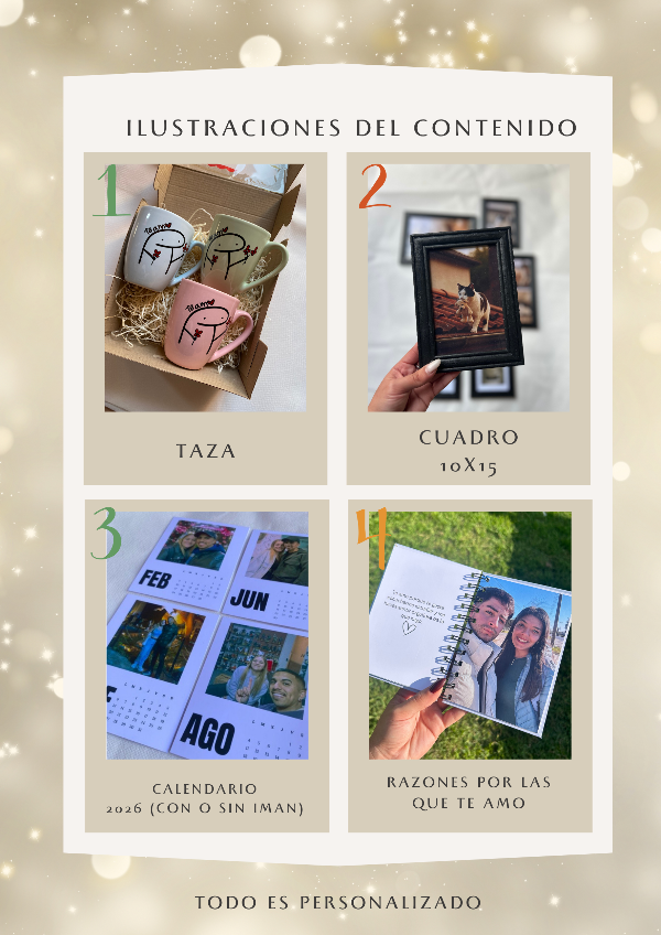 Incluye 12 fotos personalizadas.